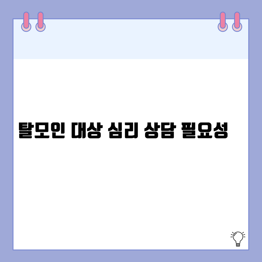 💬 실제 탈모 환자 대상 전문 심리 상담사는 점점 늘어나고 있으며, 피부과나 탈모 클리닉 내 연계 상담센터 운영 사례도 증가하는 추세입니다.